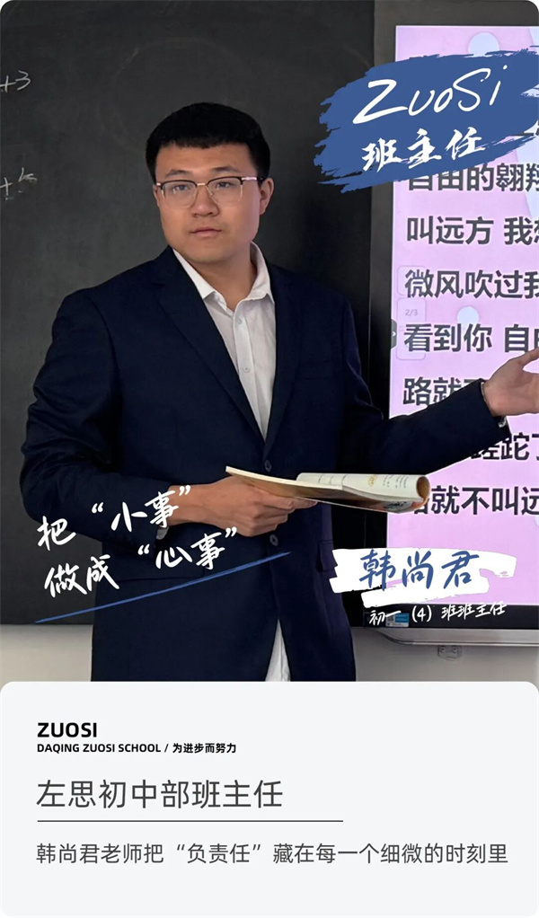 左思“打造*负责任学校”的理念,从来不是一句口号,而是藏在像韩尚君这样的班主任的日常里——他们把学生的饮食、睡眠、学习、情绪都当成“心事”,用细微的关怀,守护着学生的初中初程,也让教育的温度,在每一个平凡的日子里,悄悄传递。