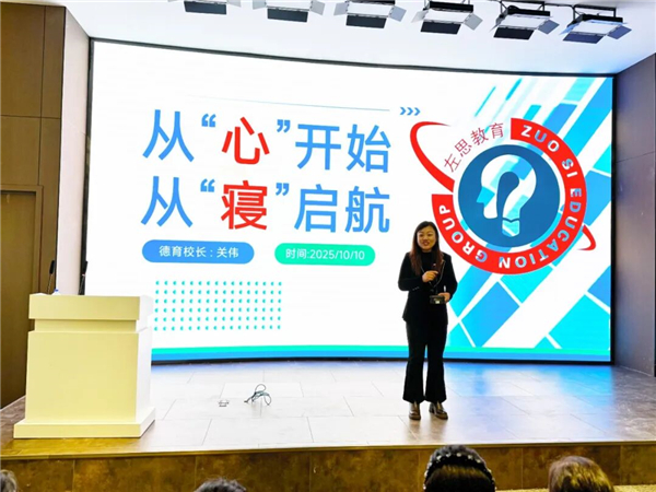 为了进一步夯实左思实验学校德育工作基础,明确育人使命,我校德育校长以“责任”为核心,面向全体班主任及寝室德育生活老师开展专题培训,旨在凝聚育人共识,尤其强化寝室管理中的责任担当,提升学生睡眠质量,为学生健康生活保驾护航。