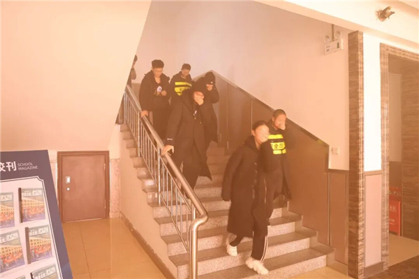 整个撤离过程无拥挤、慌乱现象,师生配合默契、行动迅速。