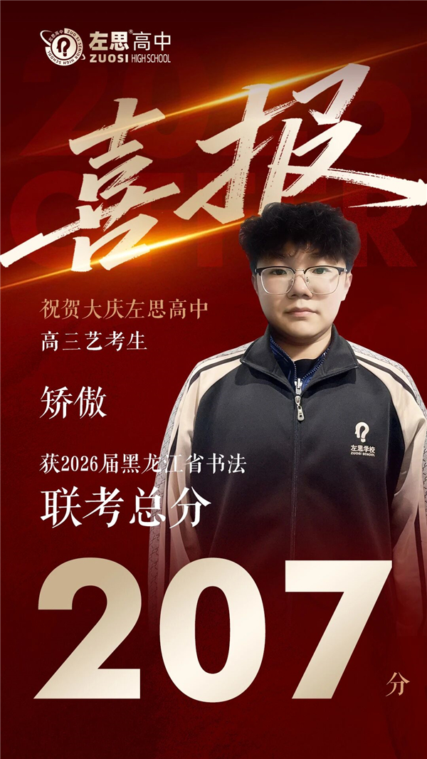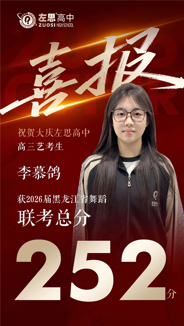 在 2026 年黑龙江省艺考的激烈角逐中,大庆左思高中艺术学子以热爱为翼、以坚守为基,在美术、舞蹈、传媒、书法多个**领域多点开花,用亮眼成绩书写青春华章,交出了一份不负韶华、不负期许的精彩答卷!
