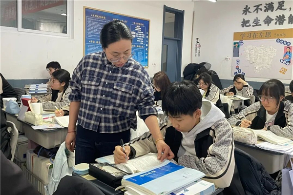 课间走廊上,总能看到学子们簇拥着老师的身影。带着课堂上的疑问,他们主动上前请教;老师们即便嗓音沙哑,也始终耐心细致,逐一拆解疑惑、梳理思路,用责任与关爱为学子们扫清备考路上的障碍。