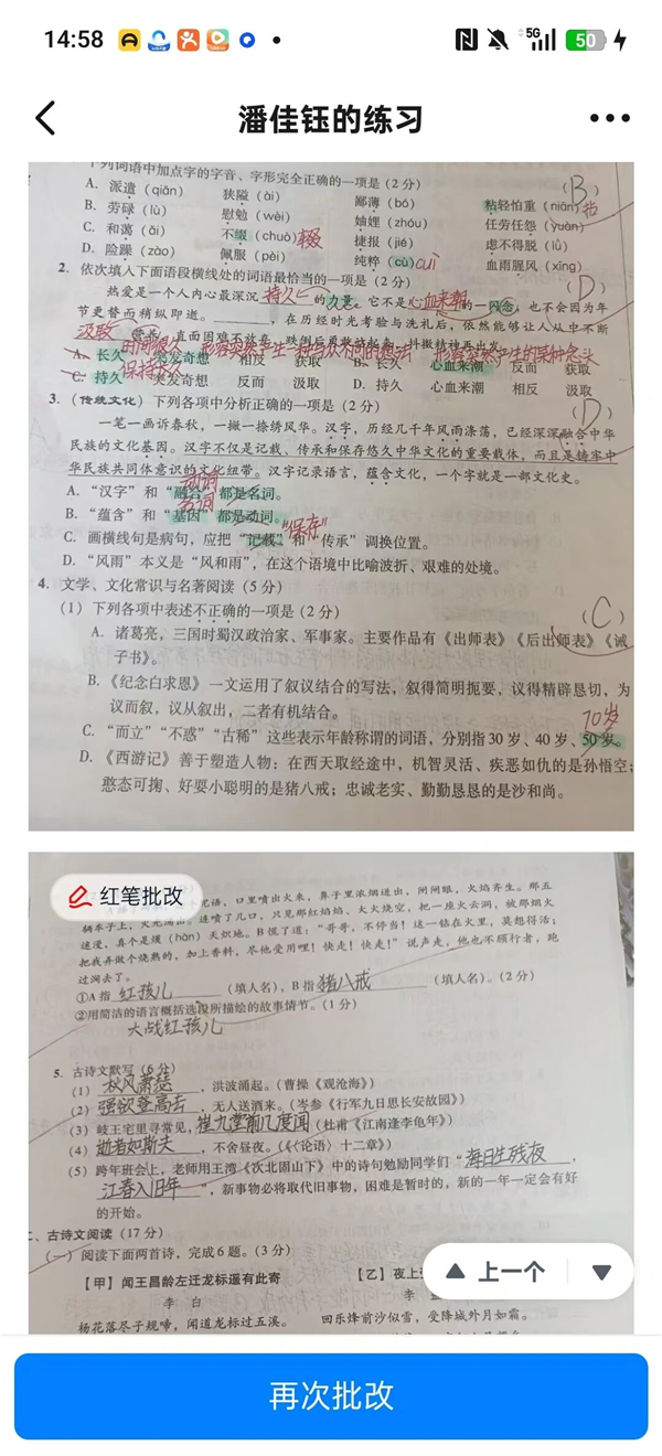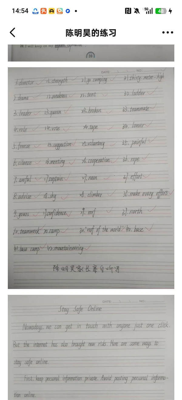 老师们坚守岗位、不负重托,坚持当日作业当日批改,精准标注亮点与不足,附上耐心细致反馈建议,让学生**时间查漏补缺、**提升。
