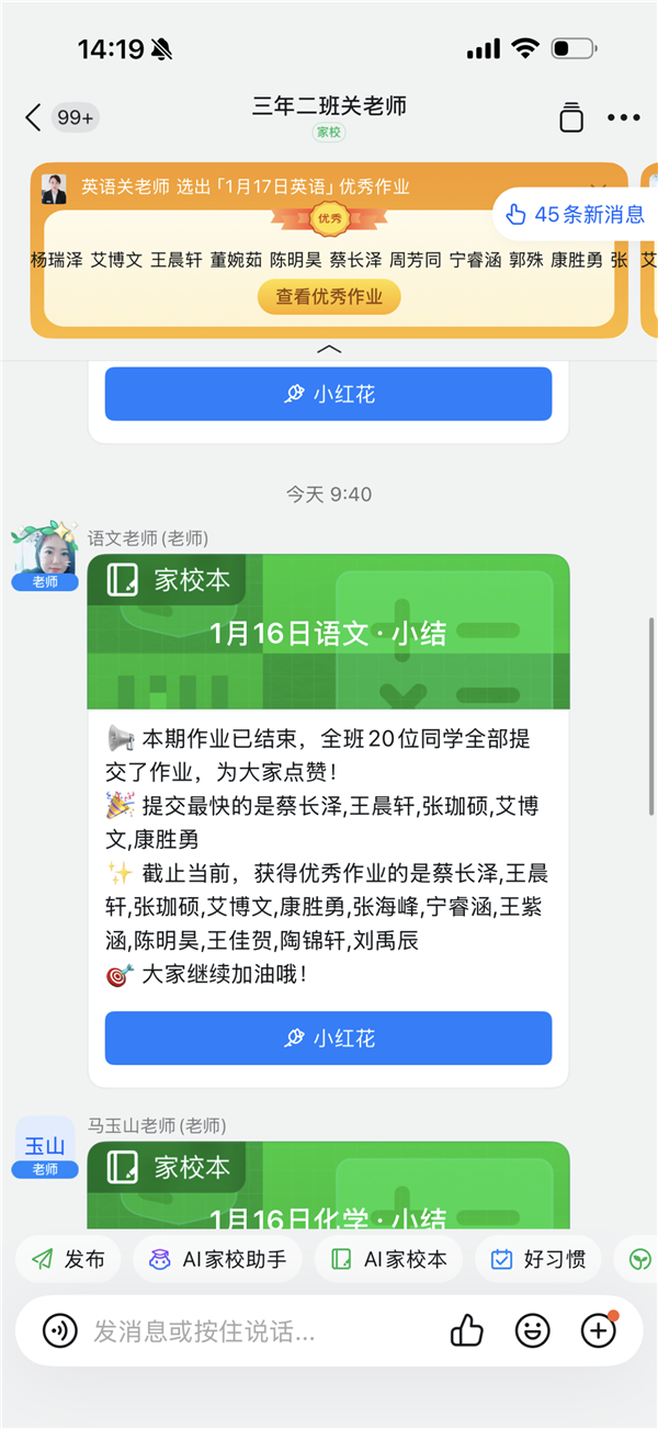 假期依然是左思实验学校对学生负责的主阵地,教育服务暖心跟踪到家,教学管理细致落实到家,时时刻刻为家长着想,为学生尽责。