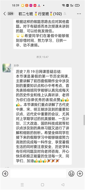 通过网课相聚,老师们不但深入地了解学生们的假期生活,而且还帮助学生解决了假期作业中遇到的困难。