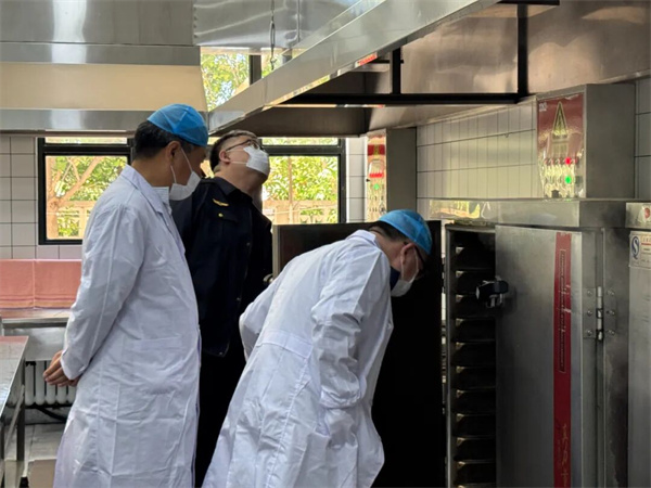 检查过程中,工作组严格对标食品安全管理标准,对食堂关键环节进行细致核查。在食材储存区,检查人员重点查看原料是否按“分区、分架、分类”原则规范存放,逐一核对食材生产日期、保质期及生产资质,对肉制品、粮油等重点品类进行溯源查验,并现场抽取部分食材进行快速检测;在操作加工区,从食材清洗切配、烹饪制作到成品存放,对全过程操作规范进行动态检查,尤其关注生熟分开、烹饪温度控制等细节。