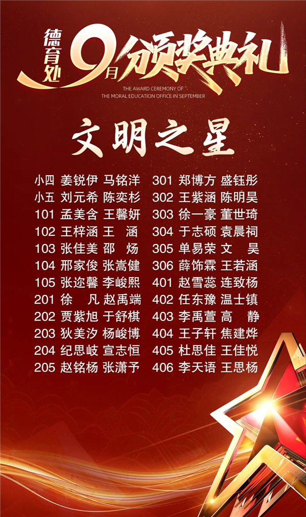 为了进一步落实立德树人根本任务,切实履行培育新时代优秀学子的教育责任,近日,左思实验学校在多功能报告厅内,隆重举办9月份德育之星颁奖典礼。