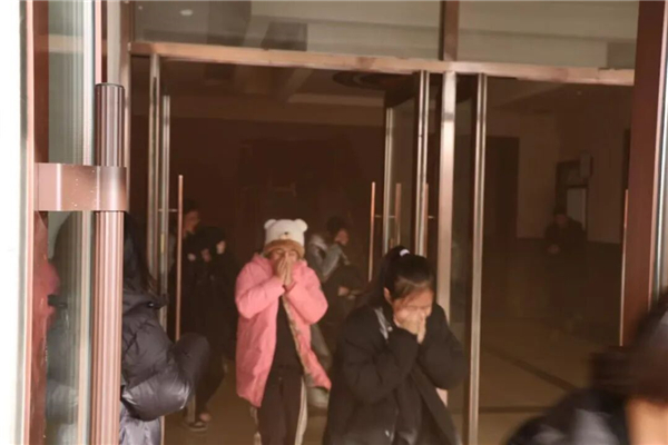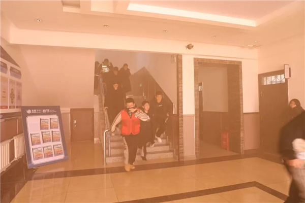 整个撤离过程无拥挤、慌乱现象,师生配合默契、行动迅速。