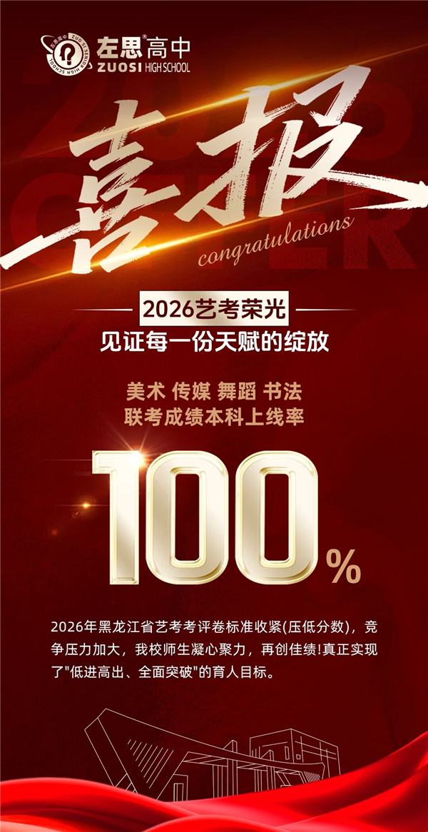 在 2026 年黑龙江省艺考的激烈角逐中,大庆左思高中艺术学子以热爱为翼、以坚守为基,在美术、舞蹈、传媒、书法多个**领域多点开花,用亮眼成绩书写青春华章,交出了一份不负韶华、不负期许的精彩答卷!