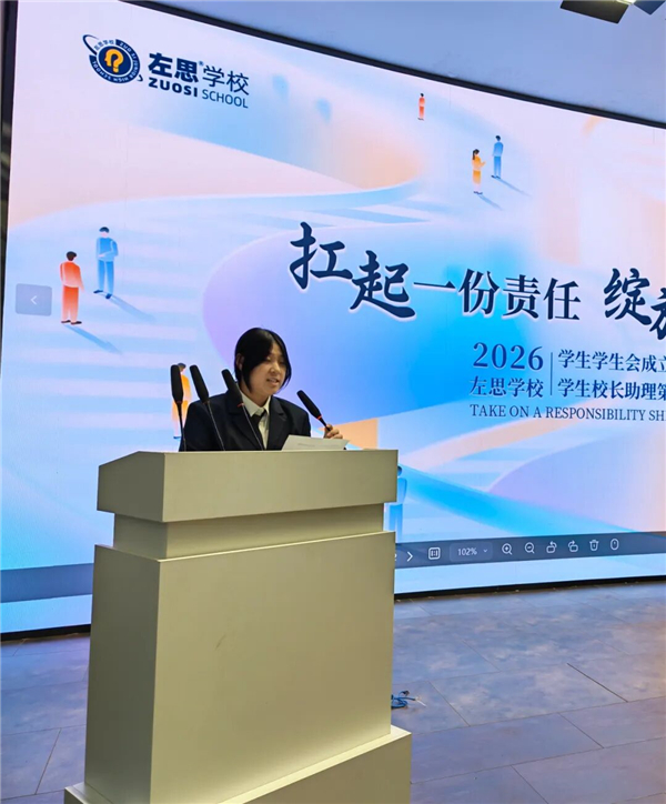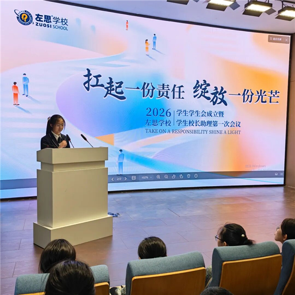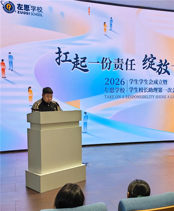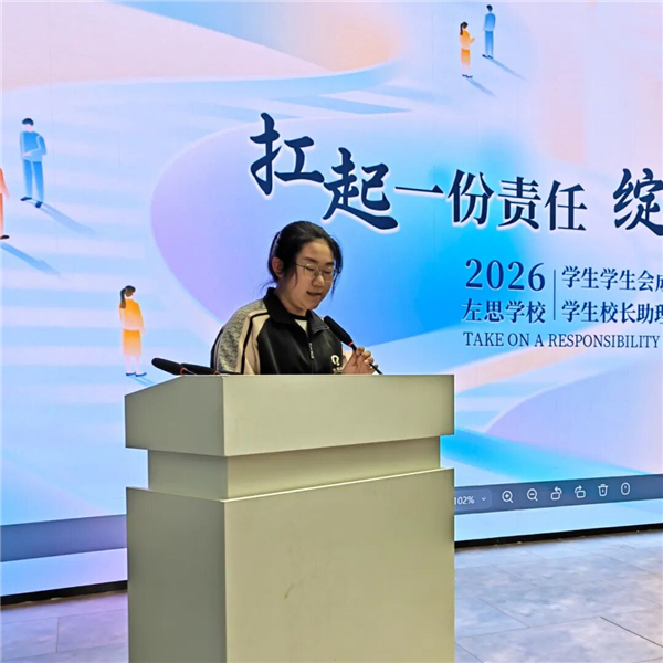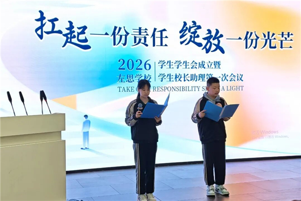 会议*后,主持人对全程内容进行总结,再次重申“责任年”的核心精神,强调五维育人承诺的重要意义,并正式宣布:2026左思实验学校学生会及学生校长助理团队正式履职。