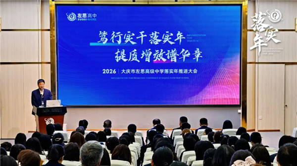 春回大地,万象更新;凝心聚力,笃行致远。为**贯彻集团发展战略,统一思想、压实责任、狠抓落实,把发展蓝图转化为实干实效,大庆左思高级中学“笃行实干落实年 提质增效促发展”推进大会隆重举行。全体教职工齐聚一堂、共商发展,为 2026 年学校高质量发展锚定方向、凝聚力量。