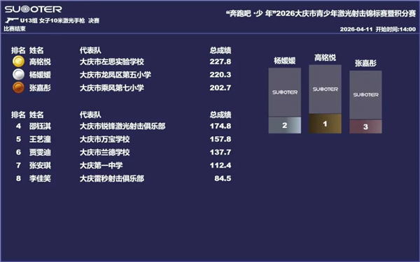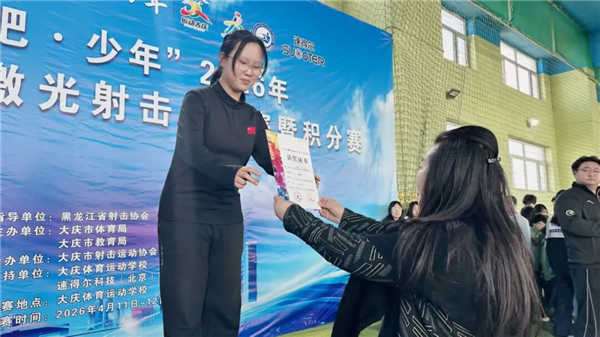 在“奔跑吧·少年”2026年大庆市青少年激光射击锦标赛赛场,我校初一五班学子高铭悦沉着冷静、稳扎稳打,凭借日常校园素养积淀练就的**定力、稳定心态与过硬综合能力,在高手云集的赛事中奋勇拼搏、脱颖而出,成功斩获赛事**,尽显左思少年昂扬向上的精神风貌。
