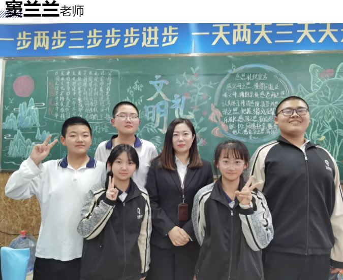 数学组高级指导教师,校一次函数中考专题分析专家,初四数学教学质量承包人,2018、2022、2023年被评为“左思学校十大感动人物”优秀教师称号,现任初四数学学科任课教师,任教左思教坛12年,多次获得“教学质量先进个人”,“教学过程优秀个人”,年度“优秀教师”等一级荣誉,所带初四毕业班数学单科成绩突出,市区排名名列前茅。