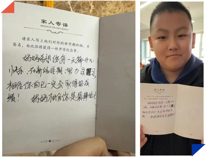 家人饱含深情的寄语,满是牵挂与期待。字里行间,有对学习的鼓励,更有对生活的关怀。无论何时翻阅,都能感受到家的温暖,成为前行的坚实后盾。收集到家人寄语后,同学们可获得家长见证章,让这份亲情永远陪伴在成长路上。